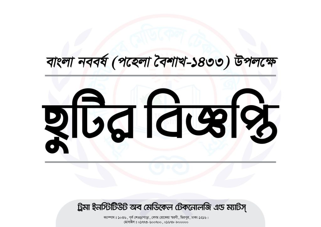 পহেলা বৈশাখ ১৪৩৩ উপলক্ষে ছুটির বিজ্ঞপ্তি